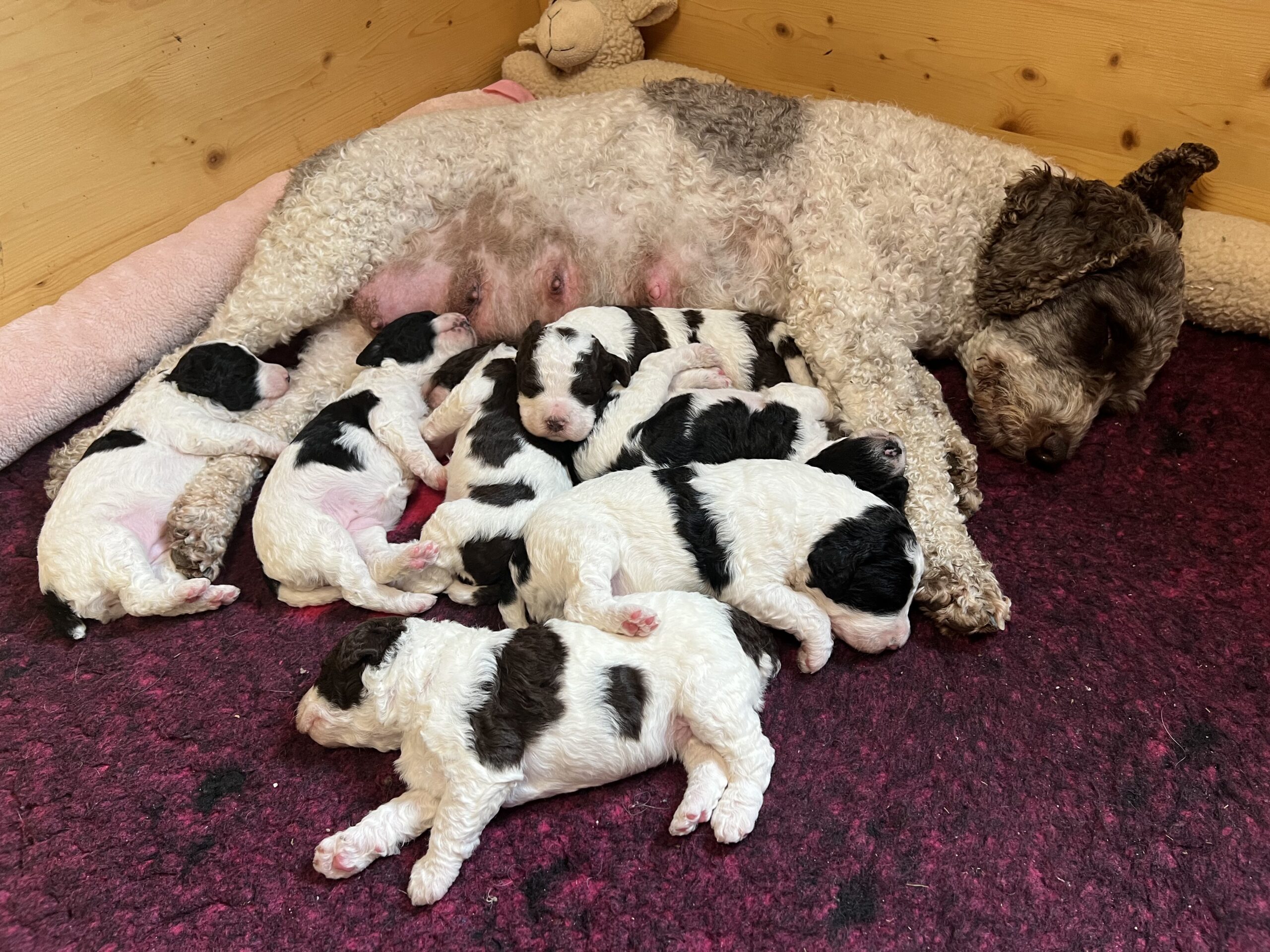 A-Wurf de Terra Alta geboren 9.3.25 (3 Hündinnen/4 Rüden) M: Aquacrest Swiss Mood x Toddini Viking Express